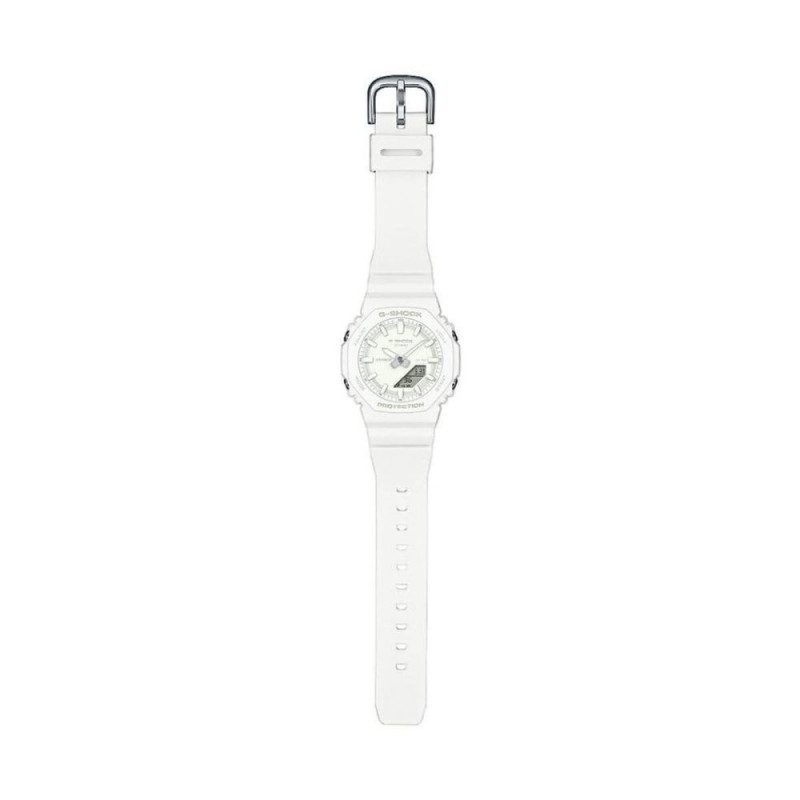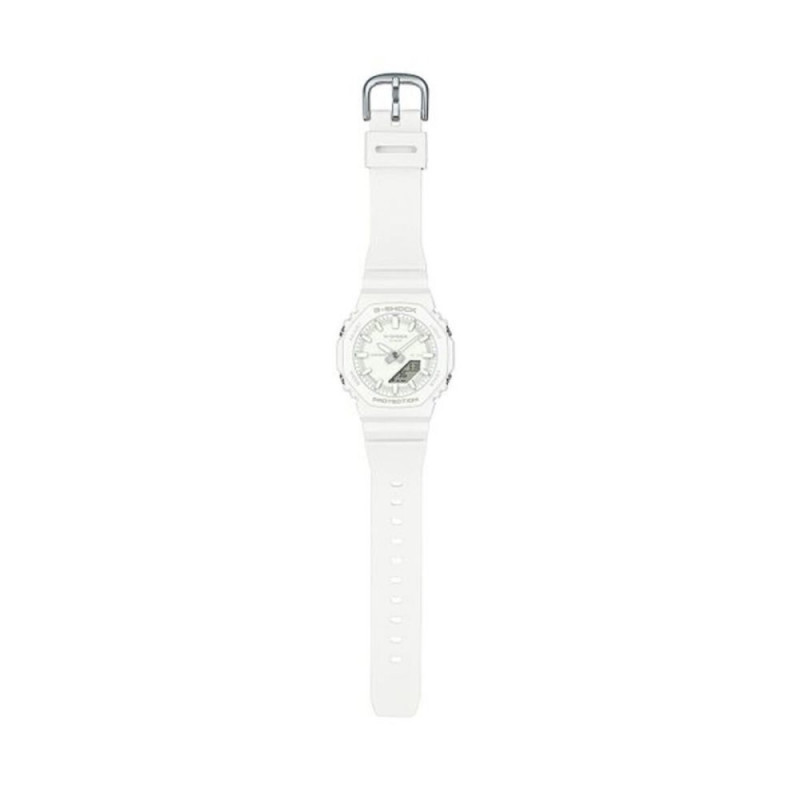 Casio G-Shock OAK COMPACT TONE ON TONE SERIES - WHITE on naiste käekell, mis ühendab funktsionaalsuse ja stiili tagasihoidliku valge esteetikaga. See mudel pakub kaasaegset disaini, mis sobib igapäevaseks kandmiseks tänu resiinist rihmale, mis on tuntud vastupidavuse, kerge kaalu ja pikaealisuse poolest ning tagab mugavuse randmel ka pikkadel päevadel. Mitme funktsiooniga multifunktsionaalne kell vastab aktiivsete ja dünaamiliste kasutajate praktilistele vajadustele, pakkudes rohkem kui lihtsalt aja näitamist. Selle pannal kinnitusega rihm tagab kindla ja turvalise sobivuse, võimaldades hõlpsat kohandamist erinevatele randme suurustele. Kuigi see on peamiselt naiste kell, võimaldab disain ja omadused ka unisex kasutust, suurendades selle mitmekülgsust ja atraktiivsust. Eriliseks teeb selle valge toon, mis lisab värskust ja elegantsi sobides igaks juhuks – alates igapäevasest kandmisest kuni diskreetse, kuid isikupärase aksessuaarini. Casio G-Shock OAK COMPACT TONE ON TONE SERIES on praktiline, usaldusväärne ja stiilne lahendus naiste kellade valikus, tasakaalustades tehnilisi omadusi ja disaini, mis on loodud klientidele, kes hindavad nii funktsionaalsust kui ka esteetikat.