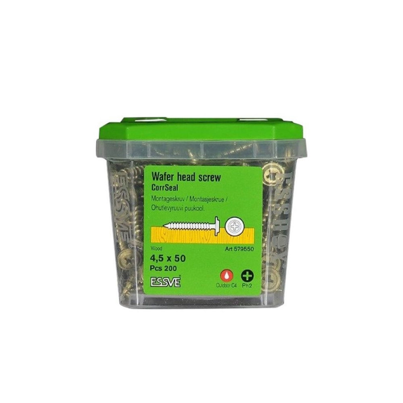 Toode on pakendatud 200 kruviga karpi, mis tagab piisava koguse suuremateks töödeks ning aitab hoida töökoha korras ja organiseerituna. Tänu standardsele mõõdule (4.5x50 mm) sobib see kruvi paljudele erinevatele projektidele ning on asendamatu abiline igas tööriistakastis.