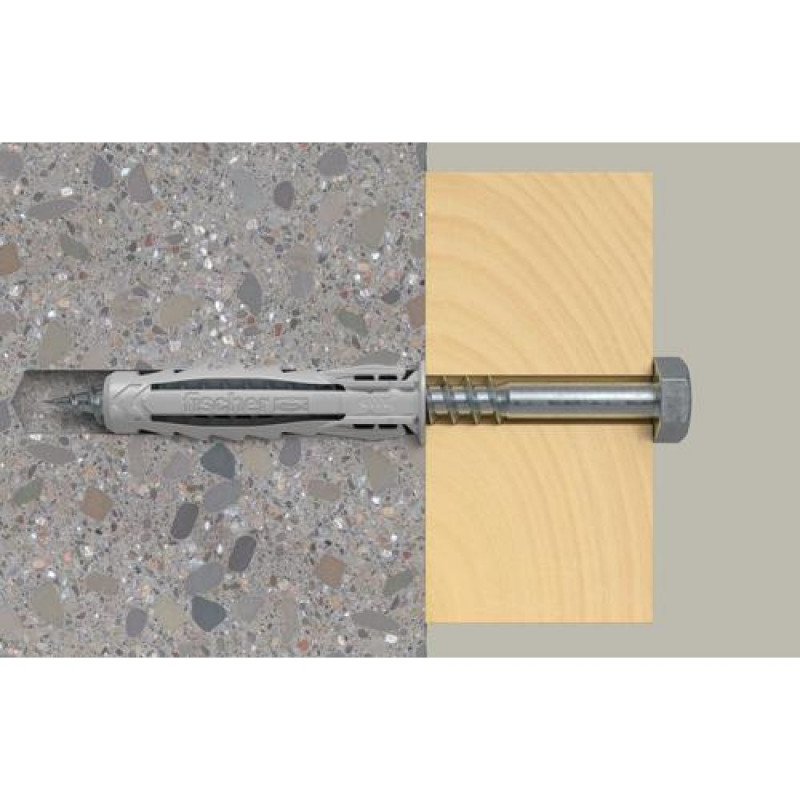 Thanks to its 4-way expansion, the fischer SX Plus expansion plug is the specialist for solid building materials such as concrete, sand-lime brick and masonry. The special fixing blades ensure pre-fixation of the screw, which means that it does not have to be additionally held in place for overhead applications. This screw fixation allows the user a flexible and comfortable setting process. The flexibel plug edge also prevents the plug from slipping deeper into the drill hole for secure installation. The high-quality nylon material guarantees a permanently secure hold in a wide range of solid and perforated building materials.Fischer SX Plus Tassello ad espansione 70 mm 14 mm 568014 20 pz.. Quantity per pack: 20 pc(s)
