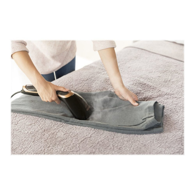 | Muud funktsioonid | Thanks to SmartFlow technology, the steam plate is heated up to an optimal temperature, safe for all fabrics, and prevents wet spots. The heated steam plate helps to press the fabric while steaming horizontally and provides even better steaming results. D |