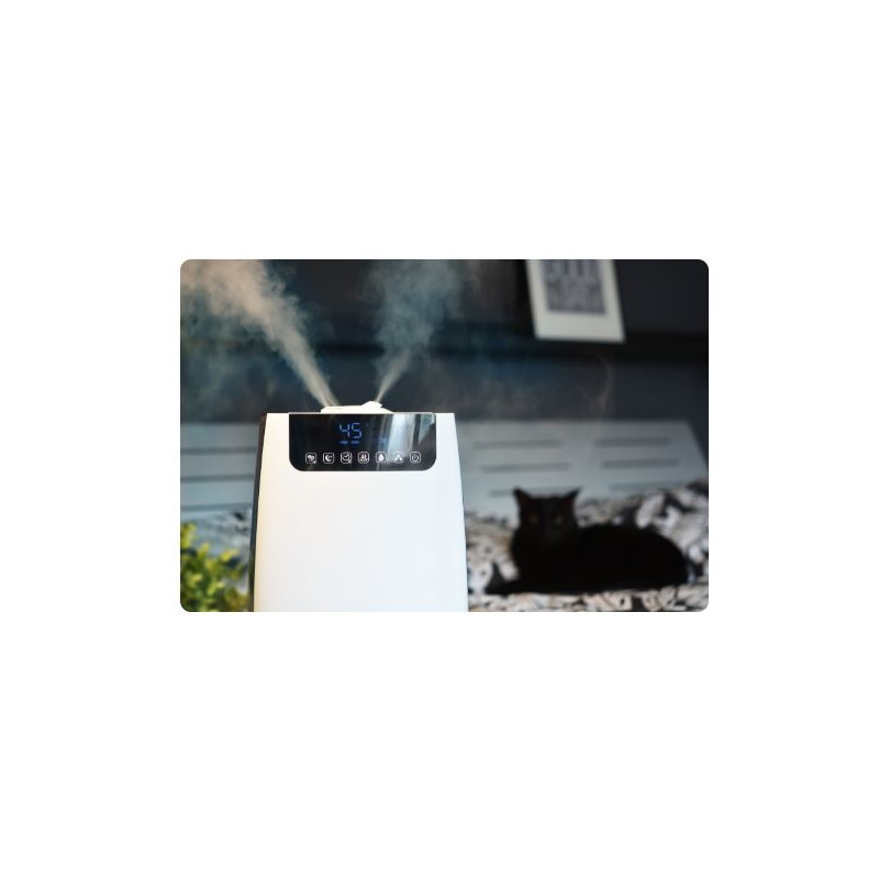 LED-ekraan puutetundliku juhtpaneeliga Õhu filtreerimine HEPA H13 filtriga Õhu steriliseerimine ultraviolettvalgusega Aroomi funktsioon, sisseehitatud ionisaator Pult Reguleeritav niisutaja 40–80% 10-tunnine taimer Jahutatud udu niiskuse efektiivsus:> 400 ml / h Demineraliseerimise kassett Üli vaikne töö Keraamilisest klaasist glasuurmuundur Veemahuti maht: 5 l Öine režiim LED taustvalgus Toiteallikas 220-240 V ~ 50/60 Hz, võimsus: 105 W Mõõdud: 24 x 17 x 37,1 cm Kaal: 2,3 kg