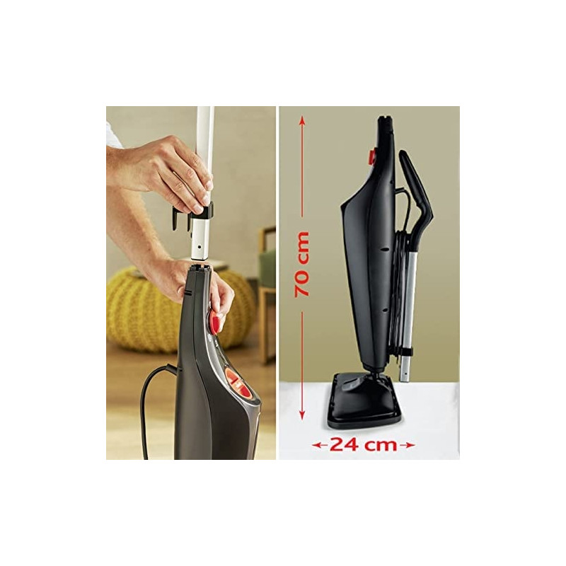 Steam Plus XXL - 168936 on varustatud suure 500 ml veepaagiga, mis võimaldab teil koristada kuni 40 minutit ilma vee lisamiseta. Tänu oma kergele disainile ja pööratavale puhastuspeale on seda mugav kasutada nii põrandatel, vaipadel kui ka mööblil. Puhastaja kuumeneb kiiresti, vaid 15 sekundiga, ning on koheselt kasutusvalmis.