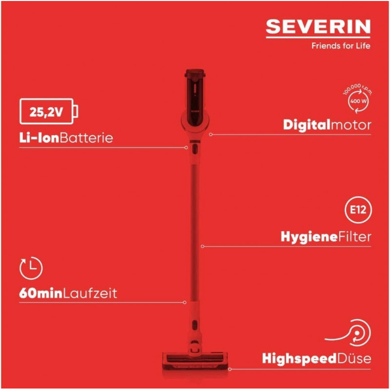 Severin HV 7166, stick vacuum cleaner (white/red)