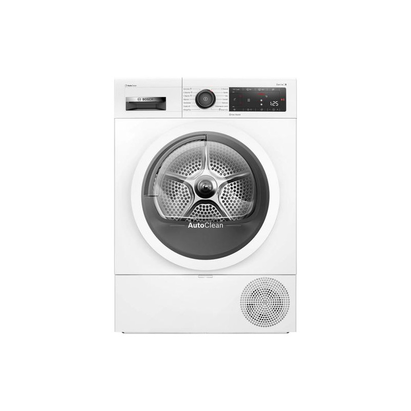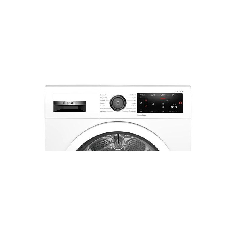 Bosch Serie 8 WTX8HKM9SN. Appliance placement: Freestanding, Loading type: Front-load, Drying system: Heat pump. Rated capacity: 9 kg, Drying class: A, Drying programs: Blouse/shirt, Cotton, Gentle care, Hygiene/anti-allergy, Mix, Quick, Synthetics,Toode on arhiivis, kuvatakse vaid informatiivsel eesmärgil.