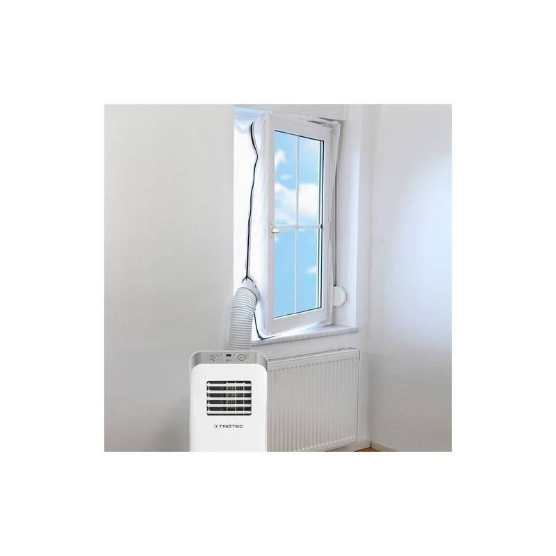 <b>AirLock 100 is the ultimate solution for this problem:</b><br><br>Once installed between window and frame with only a few steps and the exhaust air hose end led outside through the hardly opened zip of the AirLock 100, this practical aid henceforth prevents the return flow of warm exhaust air into the room.<br><br>Since the translucent AirLock 100 is made of hardwearing and water-repellent material with low specific heat conduction characteristics, you can perceptibly save energy using the AirLock 100, i.e. it pays for itself in next to no time.<br><br>Upon leaving the building the windows can be closed without difficulty. There is no need to disassemble the AirLock 100.<br><br>No matter whether with left-hand or right-hand hinge, bottom hung or skylight windows – the AirLock 100 matches all the common window constructions with a maximum perimeter of 400 cmTrotec AirLock 100. Product type: Window sealing, Product colour: White, Brand compatibility: Trotec