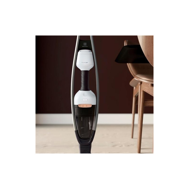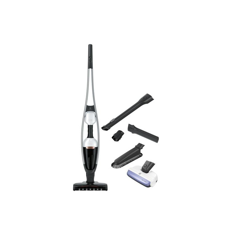 Electrolux PQ92-ALGS. Dust container type: Bagless, Product colour: Black, Silver. Cleaning type: Dry, Vacuum air filtering: Cyclonic, Foam, Dirt separating method: Cyclonic. Power source: Battery, Battery technology: Lithium-Ion (Li-Ion), Battery voltage: 25.2 V. Weight: 3.77 kg, Weight (without accessories): 800 g