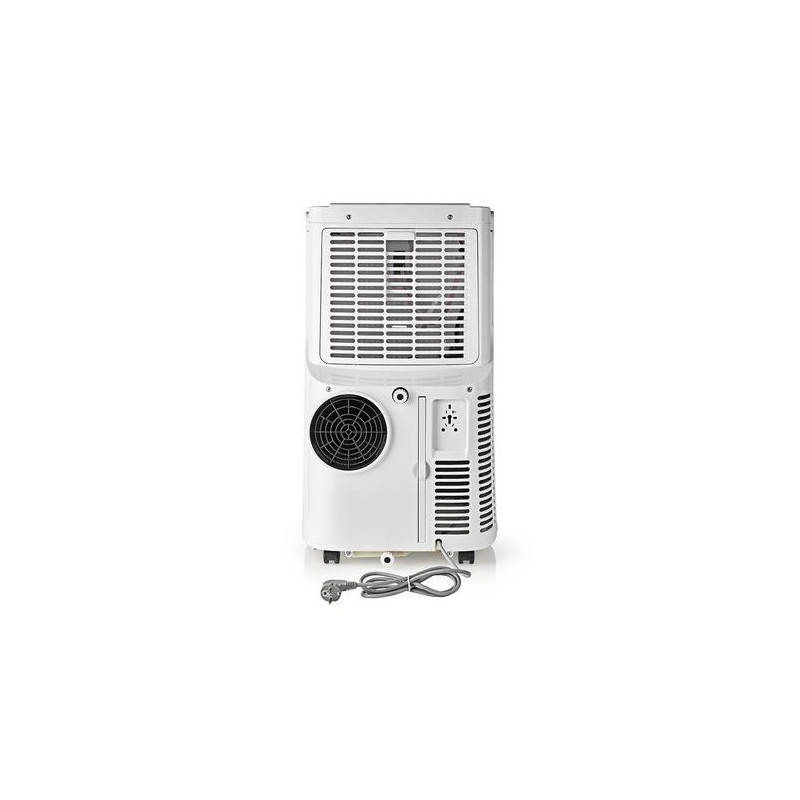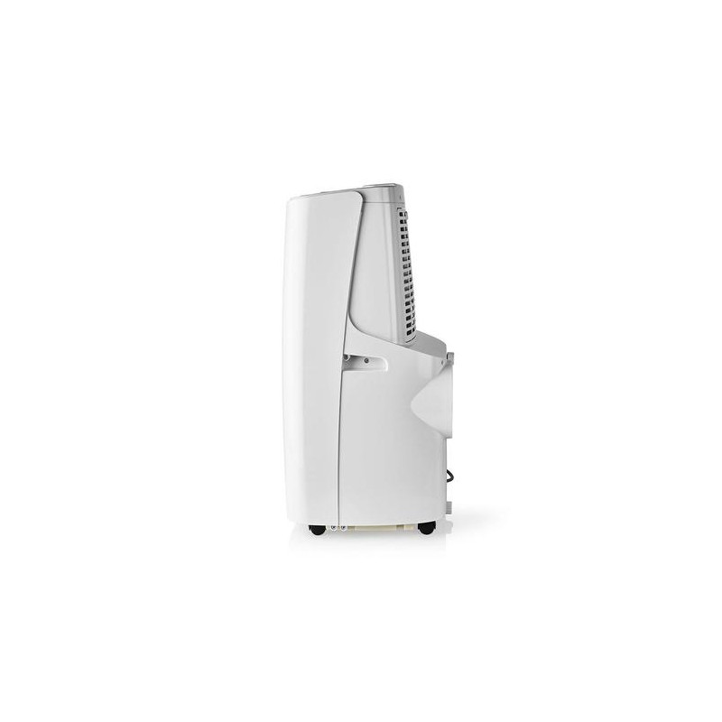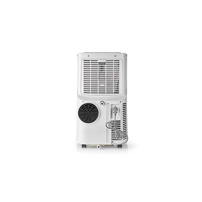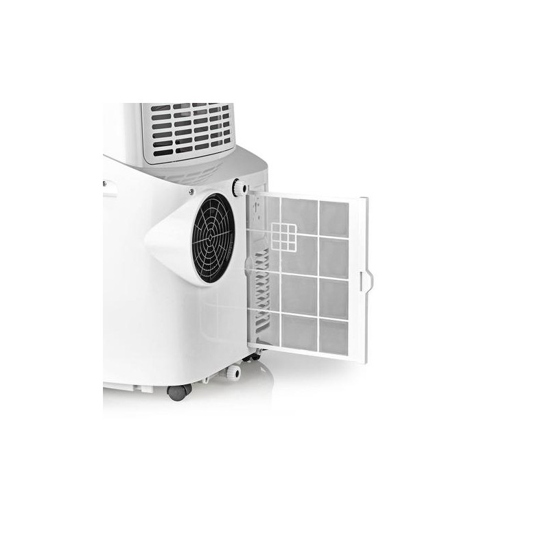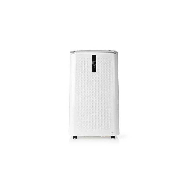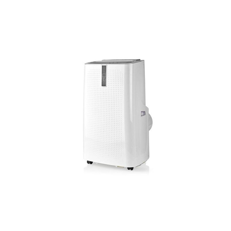 Extra flexible due to the wheels on the bottom and the integrated handle; simply move the air conditioner to another room and simply cool other rooms (as long as it has an outlet for the hot air). The supplied discharge hose with a diameter of 150 mm ensures the removal of the sucked in warm air. The air conditioner comes with a window sealing kit to hang the exhaust hose outside while minimizing warm air entering and letting all warm air out.<br>Operate the air conditioner from the couch or your chair with the included remote control with LCD screen for even more ease of use. Or operate the air conditioner with the soft-touch buttons and the LED display on the top.<br><br>The air conditioning is also almost silent; you will only notice that the device is on from the pleasant room temperature. In combination with the sleep mode in which it subtly raises the room temperature at night, the 24-hour switch-off timer and the energy efficiency, this air conditioner is perfect for the night and in the bedroom.<br><br>The air conditioning uses a modern technique that ensures that the evaporated air is reused for higher efficiency and better cooling performance. It is also easy to maintain thanks to the indicator that shows when the water tank is full and<br><br>Due to the sleek design of the air conditioning, it fits in almost any interior and with the automatic swing function you are assured of a perfectly proportional air flow and air distribution. Always provide 50 cm space between the air conditioner and the wall or other objects.Nedis ACMB1WT9. Energy efficiency class (cooling): A, Hourly energy consumption (cooling): 2.6 kWh, Energy efficiency scale: A+++ to G. Product colour: White, Black, Display type: LED. Width: 420 mm, Depth: 360 mm, Height: 720 mm