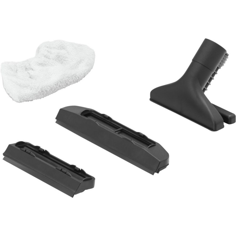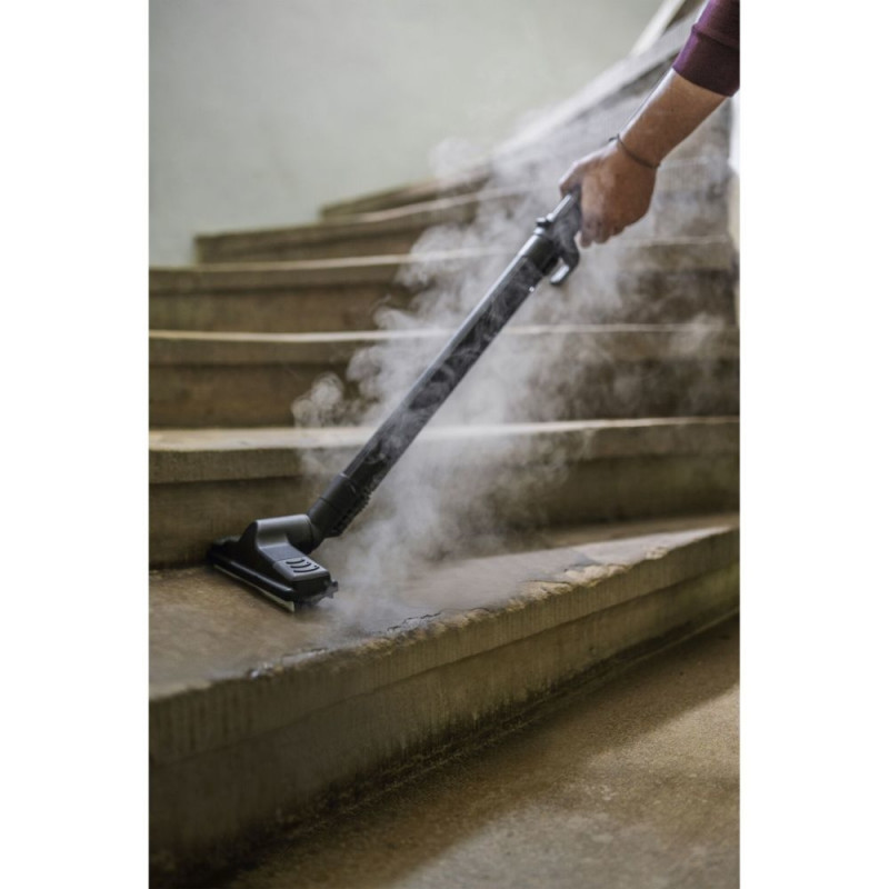 - Põrandapuhastuskomplekt auruga imemisfunktsiooniga: 3 erinevat sisestust kõvadele põrandatele ja vaipadele ning 2 auruga imemisvoolikut, mõõtmetega 0,5 m igaüks
