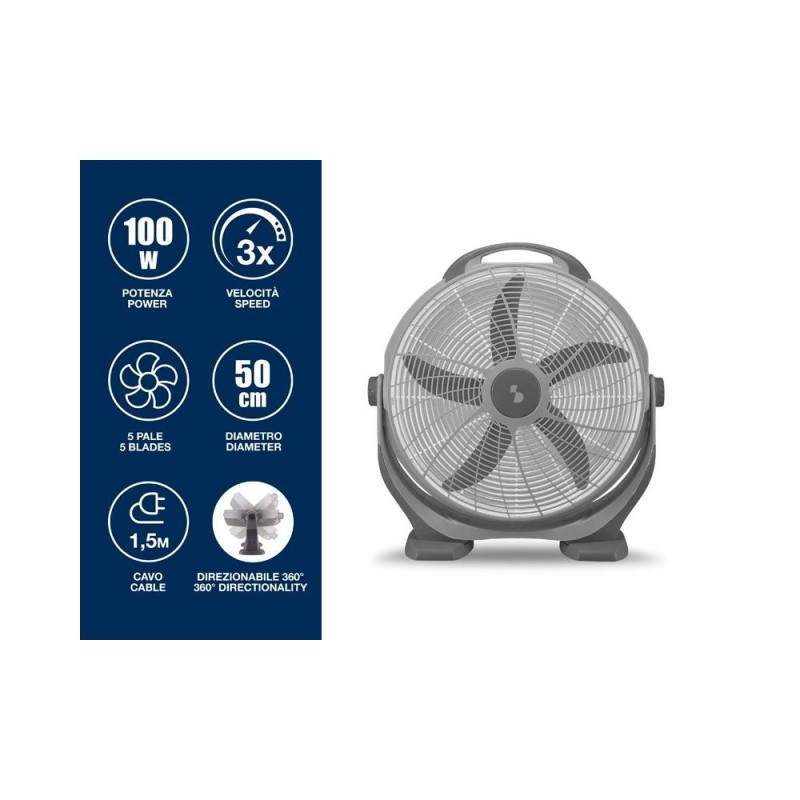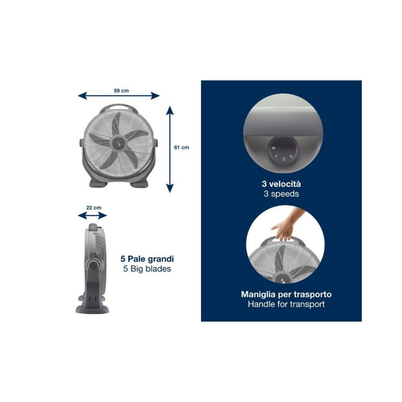 See põrandaventilaator sobib suurepäraselt igasse maja tuppa, aga ka terrassile või verandale ning kõikjale, kus vajate võimsat värsket õhku sisse tuua. Moodne disain annab sellele ventilaatorile suurepärase stabiilsuse, samas kui 5-kraadised labad ja õhuvoolu vertikaalne suund võimaldavad kõrget ja ühtlast õhuringlust. 3 valitavat kiirust maksimaalse kasutajamugavuse tagamiseks.