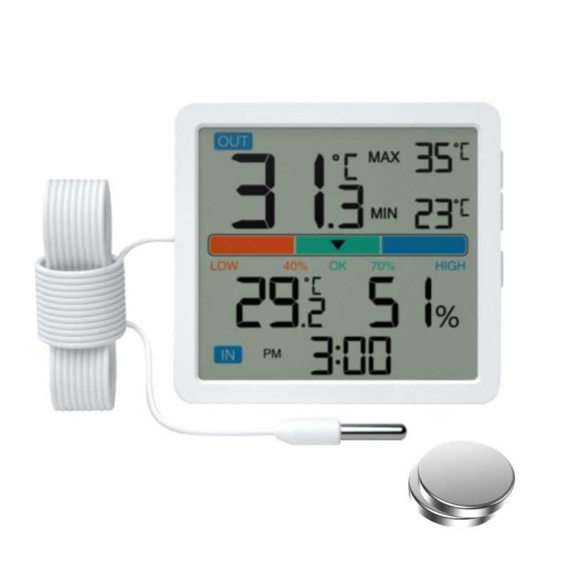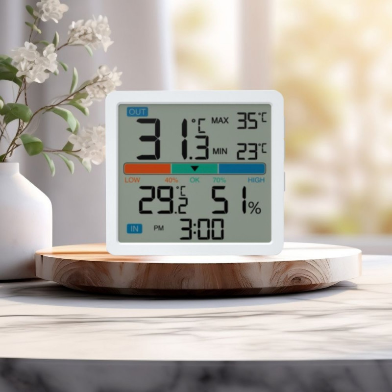Tehnilised andmed Värv: valge Suhtlemine: Puudus Toetatud andurite arv: Pole kohaldatav Kaasas olevate andurite arv: Pole kohaldatav Anduri ulatus: Pole rakendatav Materjal: plastik Omadused: termomeeter, hügromeeter, välisandur, kell, kuupäevanäit, mugavusnäidik Toide: patareid (2xCR2032) Kaasas varustus: kasutusjuhend, garantiikaart, 2 x CR2032
