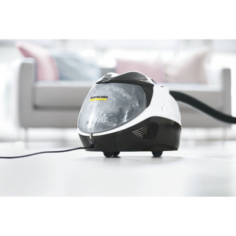 SV 7 ainulaadne filtertehnoloogia tagab pideva värske auru väljastamise ja tolmuosakeste usaldusväärse eemaldamise. Tänu integreeritud tolmuimejale ei ole vaja eraldi tolmuimejat kasutada, mis säästab aega ja vaeva. See teeb SV 7-st ideaalse abilise kiireks ja lihtsaks igapäevaseks puhastamiseks.