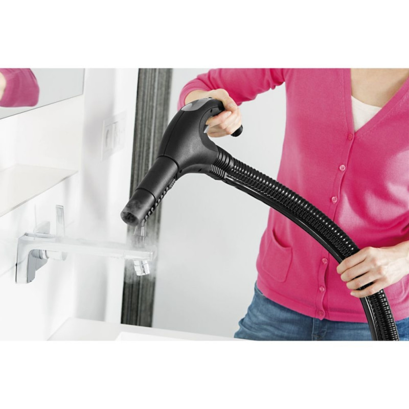 Kärcher SV 7 imuroiva höyrypesuriga on kaasas lai valik tarvikuid, mis võimaldavad teil puhastada ka kõige raskemini ligipääsetavaid kohti. See on vastupidav ja usaldusväärne seade, mis on loodud kestma.