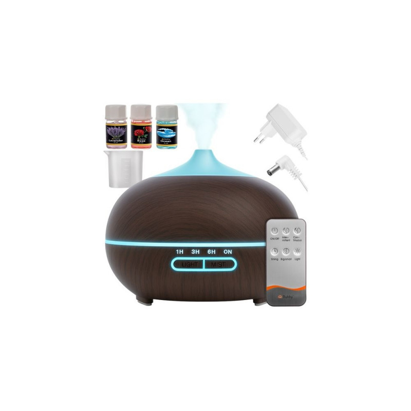 - AROMAATERAAPIA – seadmel on ka äärmiselt kasulik aroomiteraapia funktsioon. Kui lisada vette õli, vabastab niisutaja lisaks õhuniiskuse reguleerimisele ka lõõgastavaid aroome (kasutada tohib ainult vees lahustuvaid tooteid – muul juhul võib niisutaja kahjustuda). Komplektis on lausa 3 sellist õli!