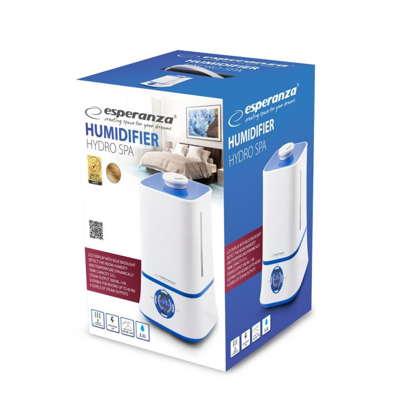 Meie nutikas ultraheli niisutaja Esperanza HYDRO SPA tuvastab koheselt temperatuuri ja niiskuse. Tänu väga vaiksele tööle on see suurepärane lahendus värske ja niisutatud õhu tagamiseks une ajal. See on ohutu kasutada. Lülitub automaatselt välja, kui selle veepaak tühjaks saab. Loob sinu tuppa fantastilise atmosfääri.