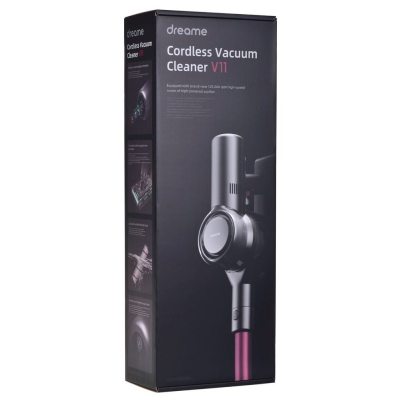 Käsitolmuimeja Dreame V11 pakub võimsat 150 AW imemisvõimsust ja 0,5 L tolmukogumismahutit ilma kotita. Seadmel on 3000 mAh aku, mille laadimisaeg on 4 tundi, ning kerge disain kaaluga vaid 1,6 kg.