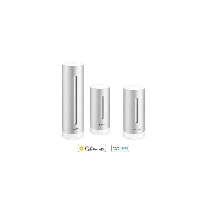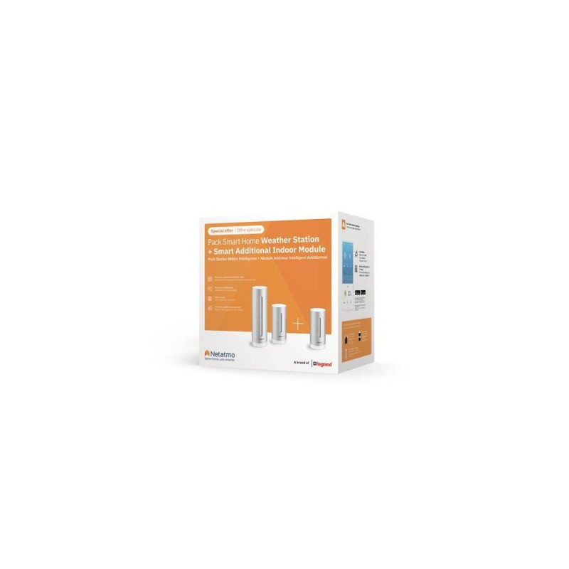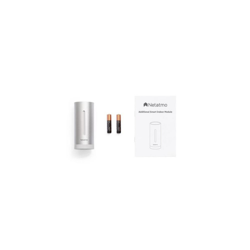<b>Access data on your indoor and outdoor environment in real time via your smartphone</b> <br>View accurate and hyperlocal readings from your Netatmo Smart Weather Station. It delivers everything you could ever want to know about your environment directly to your smartphone. Temperature, humidity levels, and air quality inside and outside your home are shown in real time. <br><br><b>Monitor the indoor environment of an additional room of your choice</b> <br>Would you also like to take readings in your bedroom or bathroom? Good idea! Every room is different and requires special attention. Install the Additional Indoor Module in another room than the main indoor module. Access temperature, humidity and air-quality (CO2) readings for this additional room in real time via your smartphone. <br><br><b>Consult your data history to understand your environment over time</b><br>Analyze your data history to understand your environment over time. Access past readings and view changes in your environment at a glance by checking the charts in the app. Been away from your garden for a month? Check how the weather was!<br><br><b>Customize your alerts to take immediate action</b><br>Customize your alerts to receive real-time information on the changes in your environment that matter to you most. Will it be frosty? Are indoor CO2 levels rising? Is the house getting chilly? Your Weather Station sends notifications to your smartphone.<br> <br><b>Improve air quality at home with ease</b><br>Did you know that the air indoors is five times more polluted than outdoors? Good news! Your Netatmo Smart Weather Station alerts you when indoor pollution levels rise. Right, it’s time to open some windows!<br><br><b>Benefit from an even smarter home</b><br>Create automations with your other connected objects to increase the functionality of your Home Weather Station thanks to the compatibility with Apple HomeKit and IFTTT. You can also use the outdoor temperature indicated by your Station to adjust the heating through your Netatmo Smart Thermostat.<br><br><b>Receive an integrated weather report</b><br>Your Netatmo Smart Weather Station knows that the weather is a crucial part of your daily life. Check the detailed seven-day forecast in the Netatmo Weather app and organize your week with complete peace of mind.<br><br><b>Explore Netatmo Weather Station readings around the world</b><br>Join the Netatmo Smart Weather Stations community to explore readings from around the world. The Netatmo Weathermap displays the real-time outdoor temperature, rain and wind conditions in more than 170 countries! <br><br><b>Adapt your activities to the weather for greater comfort and convenience</b><br>Using hyperlocal readings and forecasts, you can adapt your activities to the weather for greater convenience. Choose the best time to go out for a walk, adjust your heating, or air a room when indoor pollution is too high. The ultimate in creature comforts! <br><br><b>Add accessories to gauge the weather better</b><br>Supplement your Weather Station as required. Add up to three Additional Indoor Modules to measure your indoor environment precisely and make sure every room is comfortable. And to become a real weather pro, opt for the Netatmo Rain Gauge and Anemometer.Netatmo Indoor Pack "Smart Home Weather Station + Additional Smart Indoor Module". Product colour: Silver, Measuring functions: Indoor barometer, Indoor hygrometer, Indoor thermometer, Outdoor barometer, Outdoor hygrometer,..., Measuring functions trend display: Barometer, Hygrometer, Thermometer. Power source: AC/Battery, Battery technology: Alkaline, Battery voltage: 1.5 V. Width: 45 mm, Depth: 45 mm, Height: 105 mm. Package width: 196 mm, Package depth: 144 mm, Package height: 196 mm. Connectivity technology: Wireless, Transmission frequency: 2.4 GHz