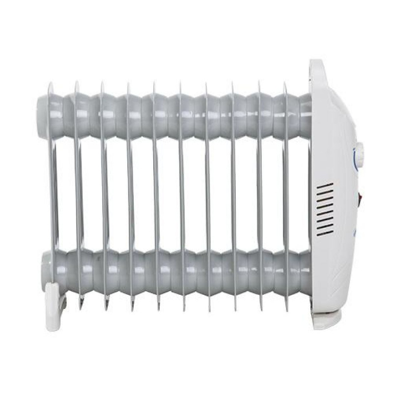 A very efficient oil-filled radiator. It helps when there is a need to heat up a room where there are no heaters or the ones that are there are not efficient enough. It is indispensable when there occurs a breakdown of the heating system. The radiator gives the possibility to regulate the temperature. For safety the device is equipped with an overheat protection. The radiator has an elegant shape thanks to which it does not visually bother when placed at home or at the office where guests or customers come by. The oil-filled radiator MS 7806 has 11 fins and is rated at 1200W.Mesko Home MS 7806. Type: Oil electric space heater, Heating element type: Oil, Operating fluid: Oil. Suitable for: Indoor, Product colour: White, Control type: Buttons, Rotary. Heating power: 1200 W. Power: 1200 W, AC input voltage: 220 - 240 V, AC input frequency: 50 - 60 Hz. Width: 420 mm, Depth: 100 mm, Height: 400 mm