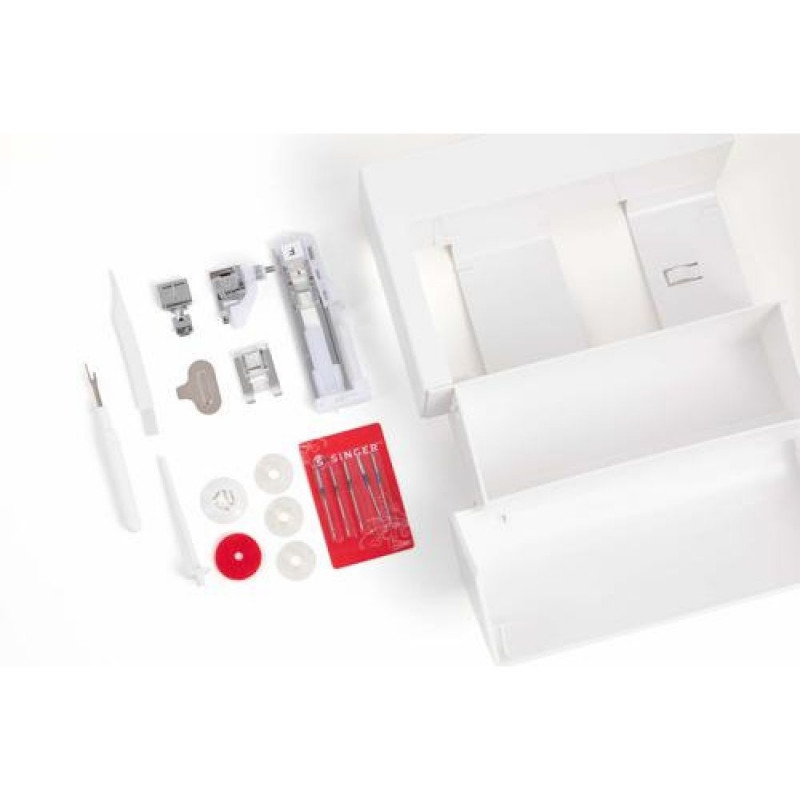 The SINGER® C430 computerized sewing machine has great ease-of-use features, plus a wide range of stitches and fonts, allowing you unlimited creative possibilities.The SINGER C430 computerized sewing machine is perfect for creating any type of project. Give every project a personal touch with five different fonts and 810 built-in stitches.Mix stitches and lettering to create unique stitch sequences for endless possibilities of customized projects. Many stitches can be mirror imaged and elongated for even more creative options.Use the Needle Up/Down feature for easy pivoting like sewing on a pocket, top stitching, free-motion quilting, applique and more.Set the maximum sewing speed of the machine where you want it with the Speed Control – faster for long seams, or slower for more intricate projects - you're always in control.The Top Drop-in Bobbin is easy to thread and easy to see, so you won't run out of thread in the middle of a seam. When you're done stitching, a simple press of the Thread Trimmer Button will cut both the top and bottom thread, saving you time.This machine has all the features you need to get your masterpieces runway-ready.<b>Included Accessories</b>General/All Purpose Foot, Zipper Foot, Blind Hem Foot, Satin Stitch Foot, Buttonhole Foot, Needles, Bobbins (Class 15), Large Spool Cap, Small Spool Cap, Auxiliary Spool Pin and Felt Washer, Needle Plate Screwdriver, Seam Ripper, and Lint BrushSINGER C430. Product colour: White, Type: Automatic sewing machine, Sewing machine functions: Sewing. Power supply type: Electric, Power: 55 W, AC input voltage: 120 V