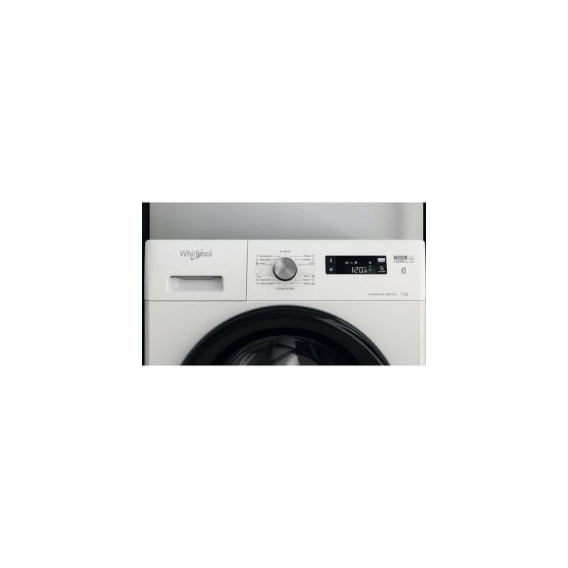 <br />Whirlpool FFS7259BEE. Loading type: Front-load. Rated capacity: 7 kg, Spin-drying class: B, Noise level (spin): 77 dB, Maximum spin speed: 1200 RPM. Product colour: White. Width: 595 mm, Depth: 575 mm, Height: 845 mm. Energy efficiency clOsta kohe, viimased eksemplarid laos!