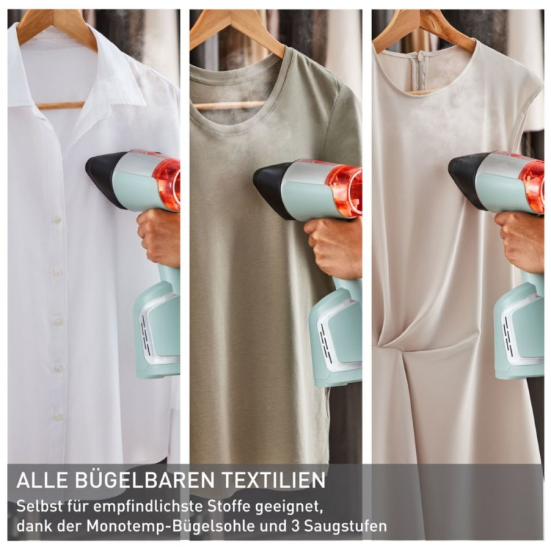 Monotemp-talla ja kolme imemisrežiimiga (ainult aur, õrn imemine, turbo imemine) sobib AeroSteam ka õrnadele tekstiilidele. AeroSteam rõivaste aurutit on lihtne kasutada ja see ei vaja keerulist seadistamist. Eemaldatav 100 ml veepaak võimaldab pikemaid aurutamisseansse ilma katkestusteta.