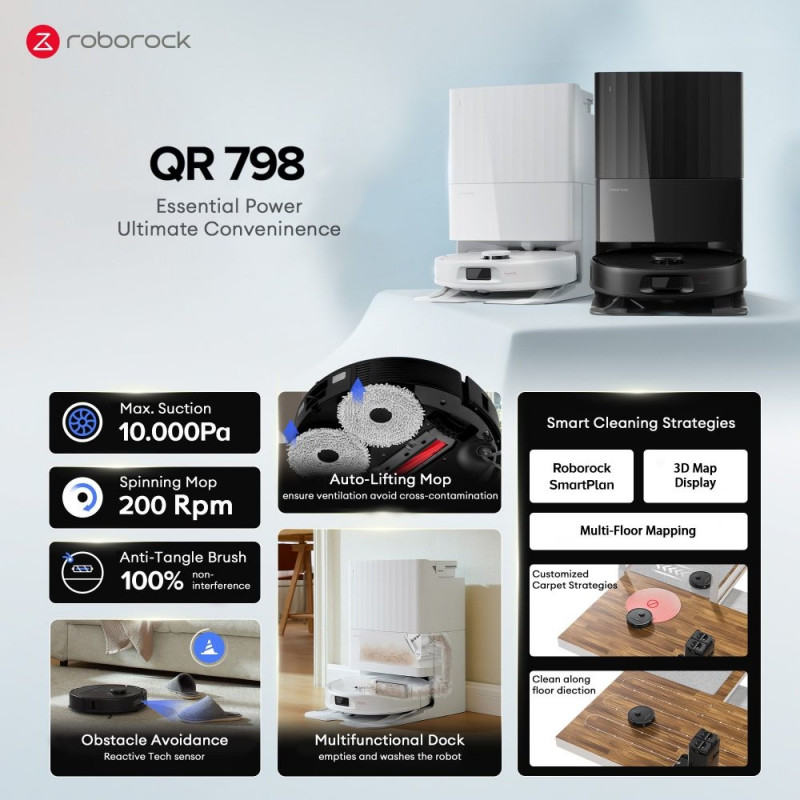Roborock Qrevo 798 Robot Vacuum Cleaner (White, model QVRRS02)