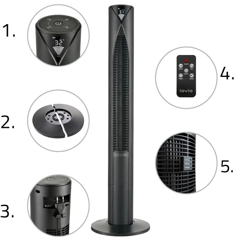 Lovio LVTF202Y24C-BK Tower Fan AirWave PRO Black