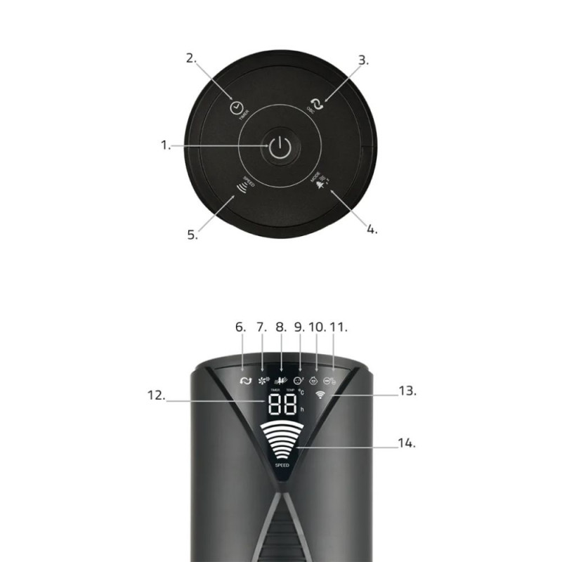 Suur võimsus 45 W – garanteerib kohese jahutuse. 6 kiirusetaset – reguleeri õhuvoolu intensiivsust hõlpsalt vastavalt oma vajadustele. 4 töörežiimi – pakuvad mitmekesisust ja kohanemisvõimet erinevate olukordade jaoks. Õhu juurdevool kuni 10 meetri kaugusele – jahutab tõhusalt isegi suuremaid ruume. Vaikne töö (21 dB) – naudi meeldivat jahutust ilma häiriva mürata. Õhu ionisatsioonifunktsioon – parandab ruumi õhukvaliteeti. 90° võnkumine – tagab ühtlase õhujaotuse kogu ruumis. Kõrgus 118 cm – üks turu kõrgemaid ventilaatoreid. Kaugjuhtimispult – halda funktsioone mugavalt ilma oma kohalt lahkumata. Nutitelefoni juhtimine – Tuya rakendusega saad seadmeid kaugjuhtimise teel sisse/välja lülitada ja sätteid reguleerida kõikjal. Sisseehitatud LED-ekraan – näitab selgelt praeguseid sätteid ja temperatuuri. Öine ekraanirežiim – hämardab ekraani heledust rahuliku ja häirimatu une tagamiseks. 12-tunnine taimer – lülitab ventilaatori automaatselt välja, ideaalne öiseks kasutamiseks. 1,5 m toitejuhe – pakub paindlikkust paigutamisel. Laste ja lemmikloomade ohutus – kaitstud terad ja teravate servade puudumine. Stiilne ja moodne disain – õhuke ja elegantne, sobib ideaalselt igasse interjööri.
