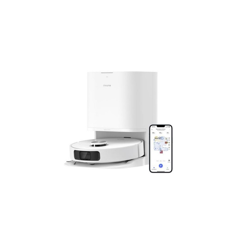 <br />Dreame L10 Prime. Dust container type: Bagless, Product colour: White, Shape: Round. Dust capacity (total): 0.45 L, Noise level: 72 dB, Base station functions: Charging. Battery technology: Lithium-Ion (Li-Ion), Battery capacity: 5200 mAh, Runtime: 150 min. Height: 97 mm, Width: 350 mm, Depth: 350 mm. Package weight: 14.5 kg