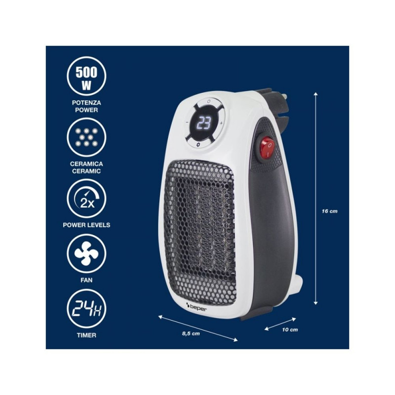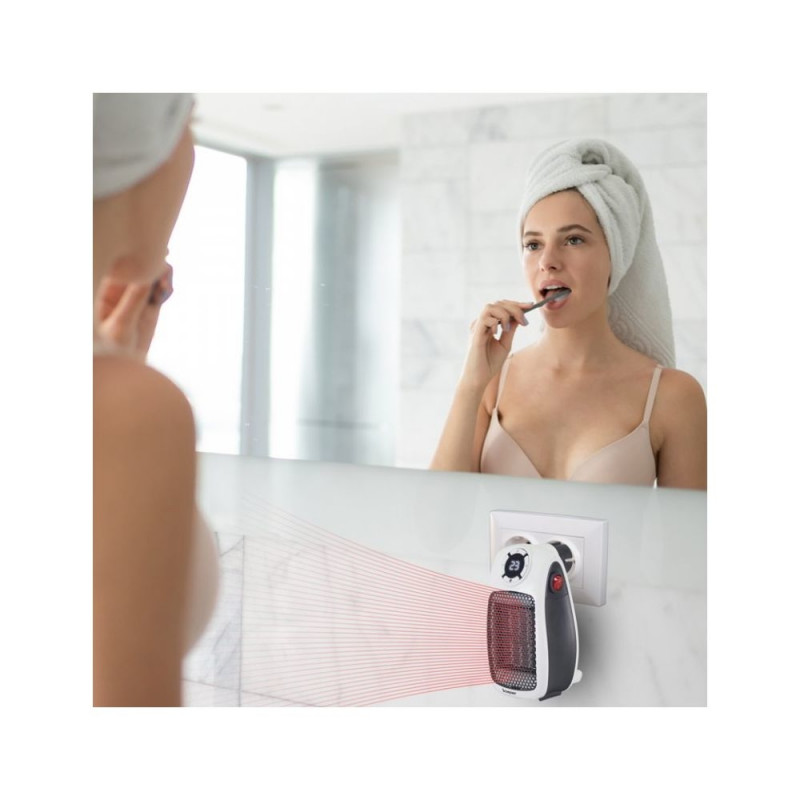 Kompaktne ja ruumisäästlik keraamiline ventilaatorkütteseade sobib ideaalselt selliste ruumide nagu vannitubade, kontorite või magamistubade kiireks soojendamiseks. LED-ekraani, 90° pöörleva pistiku ja kahe võimsustasemega võimaldab see temperatuuri reguleerida vahemikus 6 °C kuni 32 °C. 24-tunnine väljalülitustaimer ja ülekuumenemise kaitsesüsteem tagavad ohutu ja tõhusa kodumugavuse.