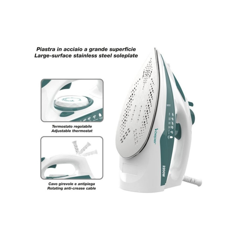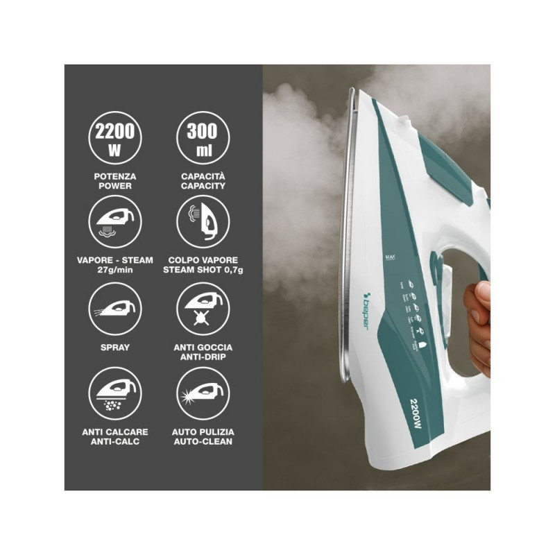 Võimas, kiire ja täpne: BEPER SteamPro 300 on triikraud, mis on loodud triikimise lihtsamaks ja kiiremaks muutmiseks isegi kõige keerulisemate kangaste puhul. Selle suure pinnaga terasest tald tagab ühtlase soojuse jaotumise ja libiseb hõlpsalt igat tüüpi kangastel. Oma 25–27 g/min pideva auru ja 0,7 g aurujoaga eemaldab see sügavad kortsud ja kangekaelsed plekid vaid mõne liigutusega. Temperatuuri saab täpselt reguleerida vastavalt rõivaeseme tüübile, et saavutada iga kord optimaalsed tulemused. 300 ml mahuti tagab pika tööea ning nii kuivatamine kui ka aurutamine muudavad selle äärmiselt mitmekülgseks. Praktiline tilkumisvastane, isepuhastuv ja katlakivivastane süsteem täiendavad funktsioone, tagades pikaajalise jõudluse ja minimaalse hoolduse.