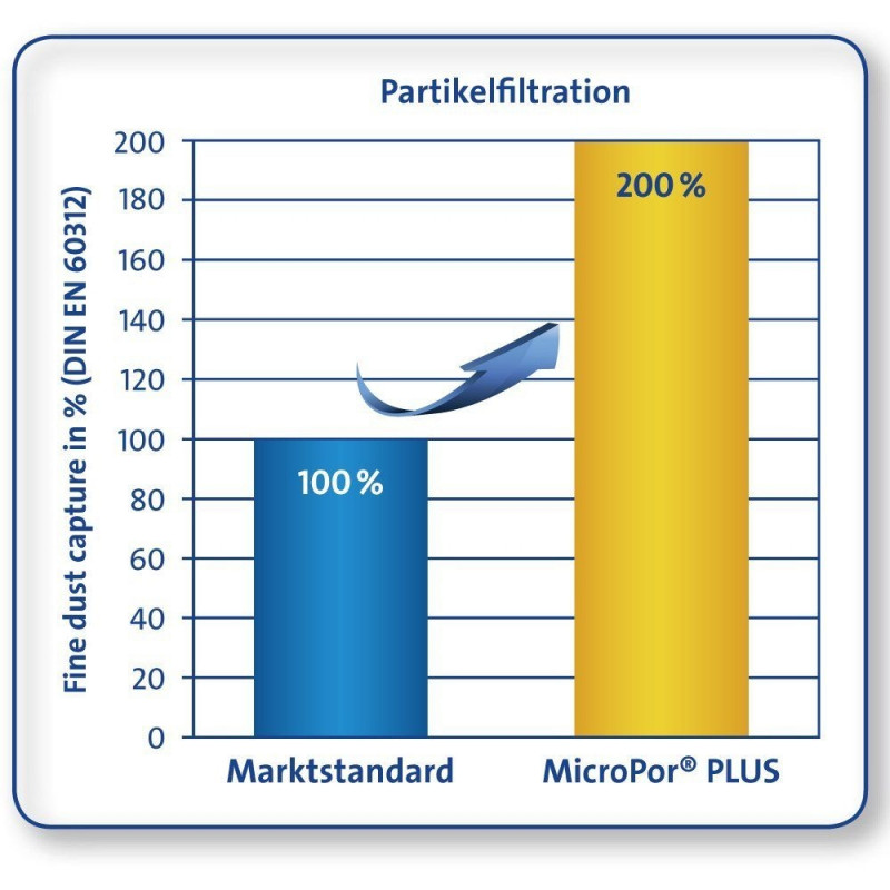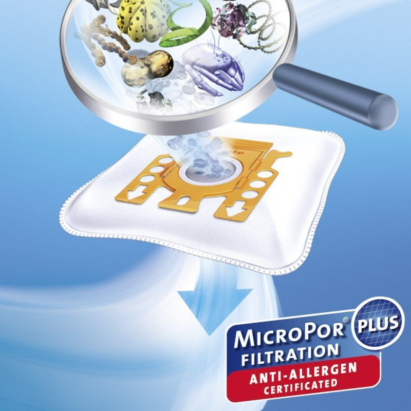 These vacuum cleaner bags have an extra filter chamber, which pre-filters dirt and dust and distributes the dust better in the bag. This means you maintain the highest suction power of your vacuum cleaner until the bag is full, performance does not diminish as it does with conventional bags.