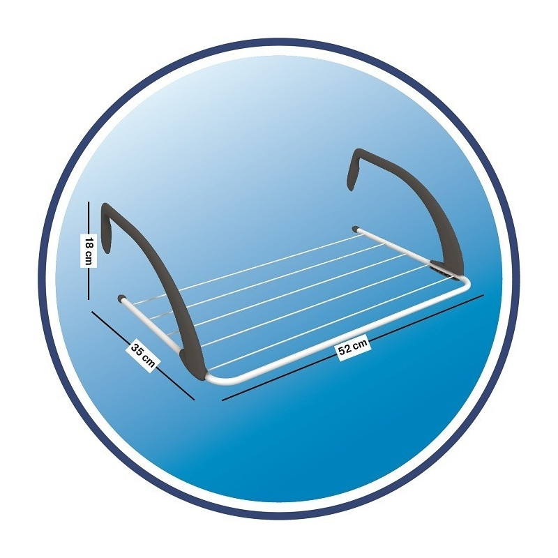 Radiaatori kuivati tugevate vartega. Võimalik riputada ka rõdule. Ideaalne väikese, igapäevase pesu kuivatamiseks. Varustatud reguleeritavate, kokkupandavate plastvartega. Varustatud kaitsetega, mis takistavad kasutamisel kriimustuste tekkimist.