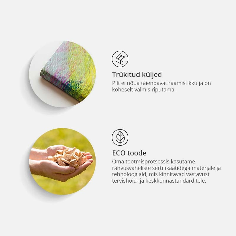 Trükivärvide ja materjalide valik on keskkonnasõbralik, seinapilt sobib ka magamistuppa ja lastetuppa.