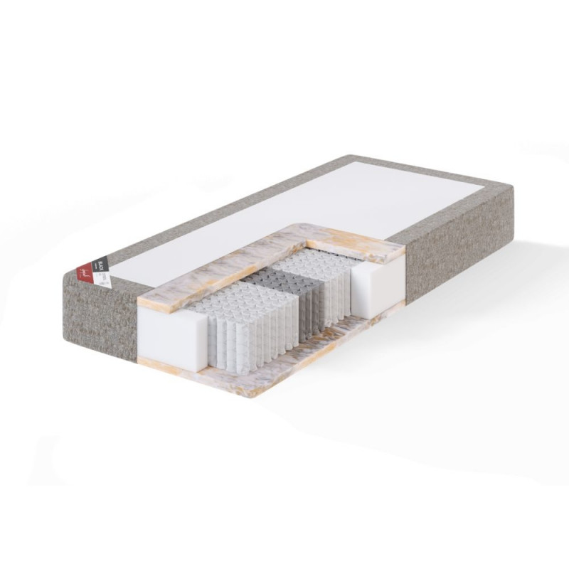 Vedrumadratsi ühel poolel on naturaalne lateks, teisel poolel on Tiger Touch poroloon, mis on materjalitööstuse viimane sõna - laseb hästi õhul liikuda ning moodustab mõnusalt vetruva, keha toetava vormi.