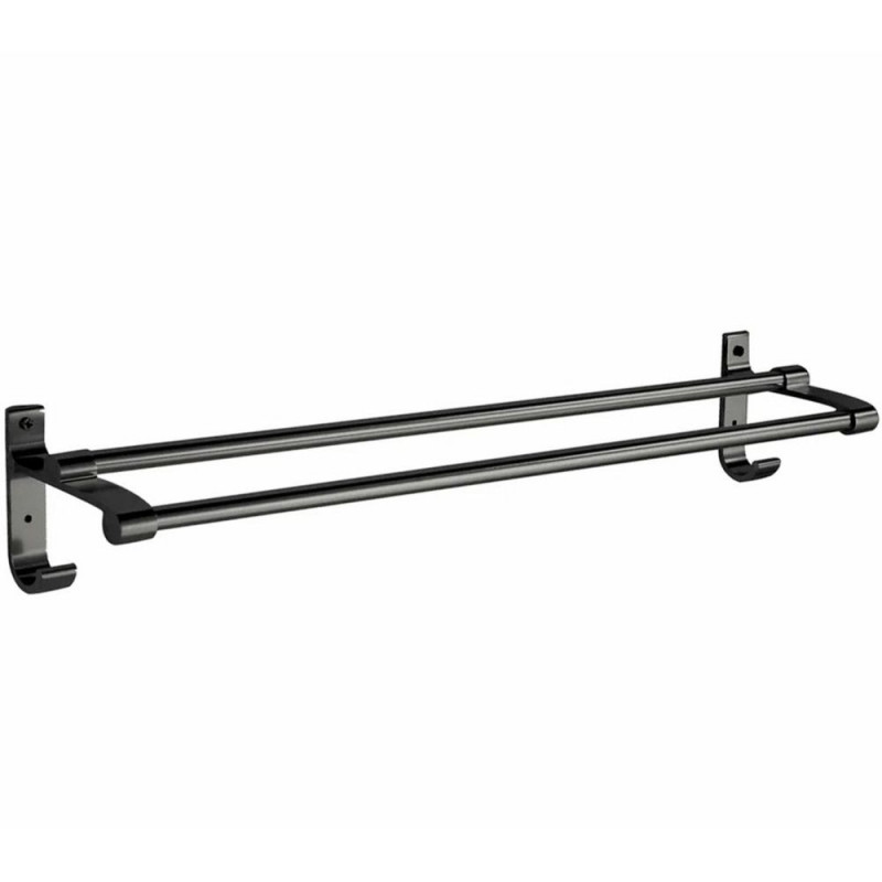 Loft-stiilis metallist vannitoa rätikuhoidja. Valmistatud vastupidavast pulbervärvitud mattmustast alumiiniumist. Toode on vastupidav niiskusele ja kulumisele, tagades pikaajalise ja probleemivaba kasutamise. Hoidjal on kaks rätikute riputamiseks mõeldud kätt. Standardne kruvidega kinnitamine (kõik elemendid komplektis).