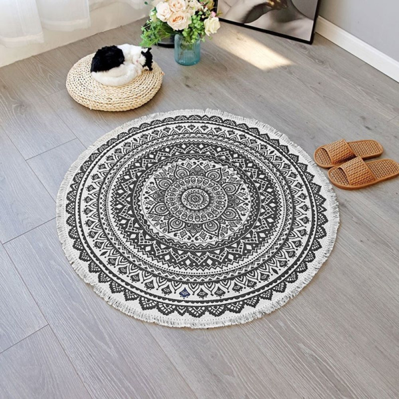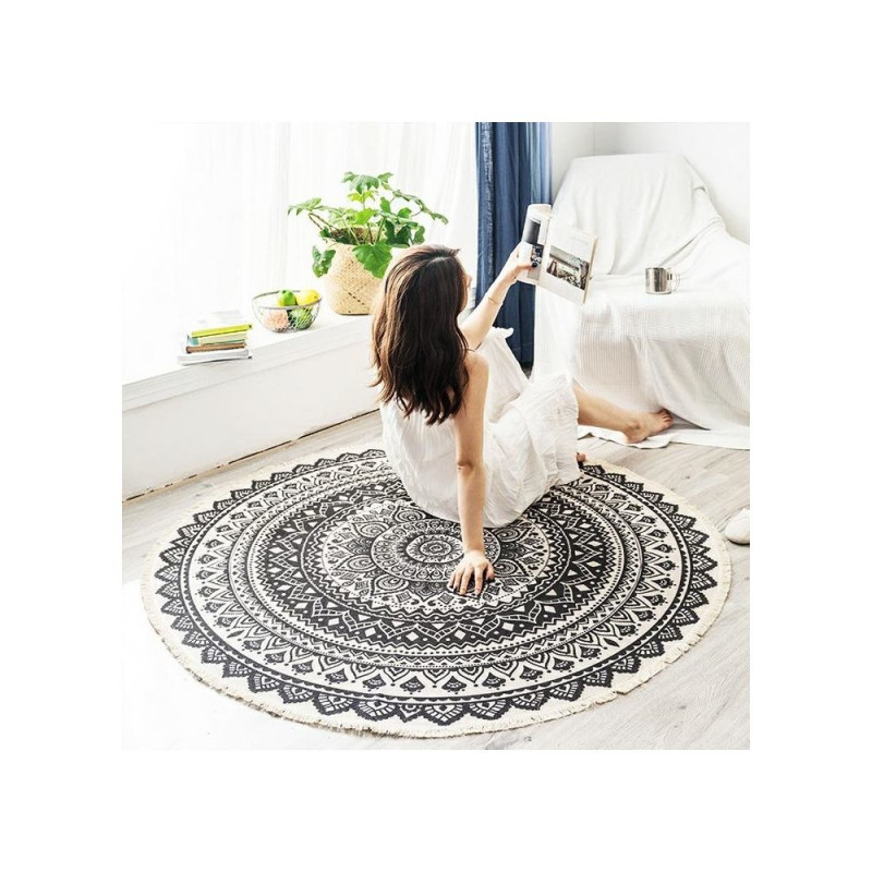 - Ümmargune boho-stiilis dekoratiivne vaip.