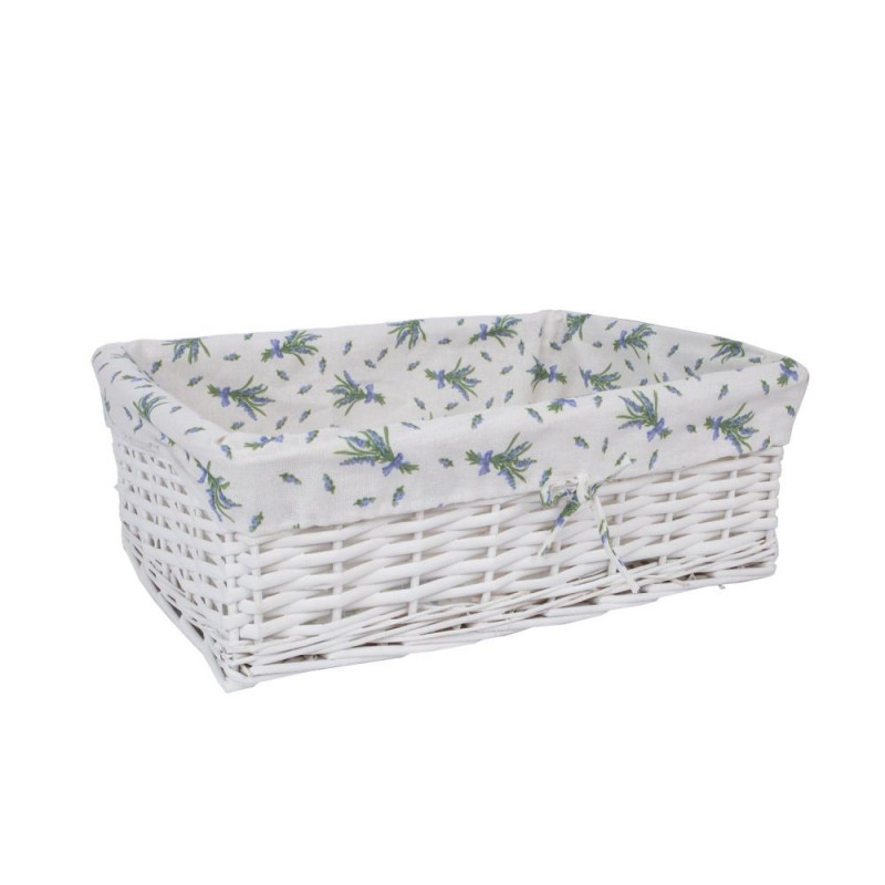Korv MAX-3, 48x34xH16cm, valge punutis, lilleline kangas