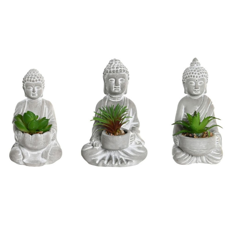 Dekoratiivne Taim Home ESPRIT Polüetüleen Tsement Buddha Idamaine 10,5 x 8 x 16 cm (3 Ühikut)