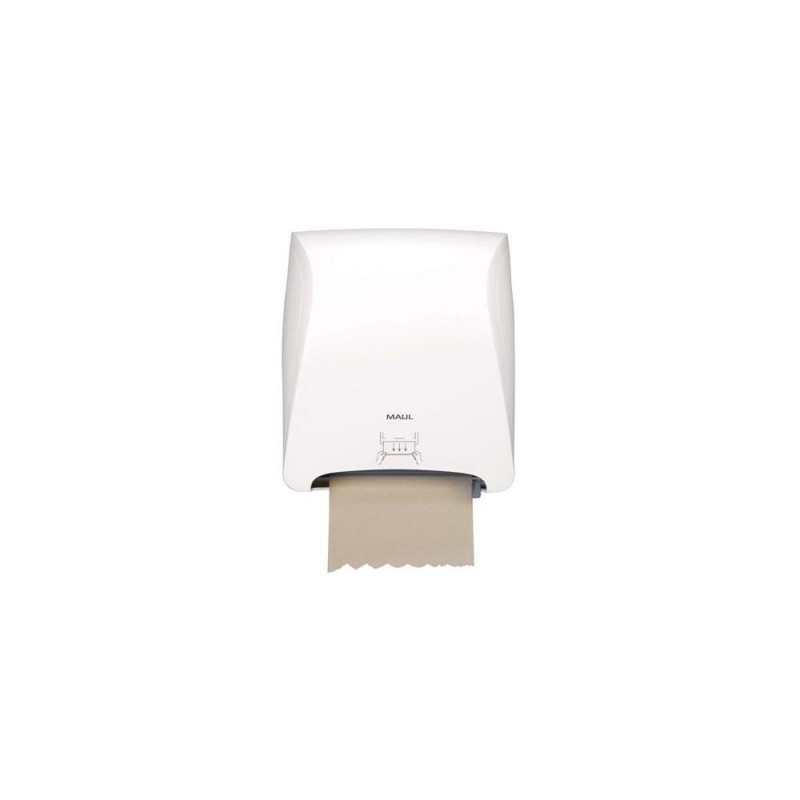 <b>- High quality & hygienic: Design dispenser for automatic single-sheet dispensing<br>- Contactless: Towel dispensing by simple pull<br>- Cost-effective: High capacity with 760 sheets, economical single-sheet dispensing reduces consumption and waste<br>- Compatible with MAUL 2-ply towel roll 100% cellulose, item no. 9537409 and 2-ply Eco, item no. 9537809, sheet length 26 cm<br>- Indicator: LED warning when low fill level<br>- Durable: Made of high-quality, shatterproof plastic (ABS) for long lifespan<br>- Safe: Lockable to prevent unauthorized access</b><br><br>- For all hygiene-relevant areas in offices, craftsmanship, industry, and hospitality<br>- Paper feed through push lever<br>- Design dispenser: Modern shape, elegant lines<br>- Quick and easy refilling<br>- Easy and secure wall mounting, including mounting materials<br>- Easy-care and hygienic: Smooth surfaces for easy cleaning<br>- Recyclable<br>- Recyclable packagingMAUL 9532402. Width: 348 mm, Depth: 218 mm, Height: 385 mm. Country of origin: Germany
