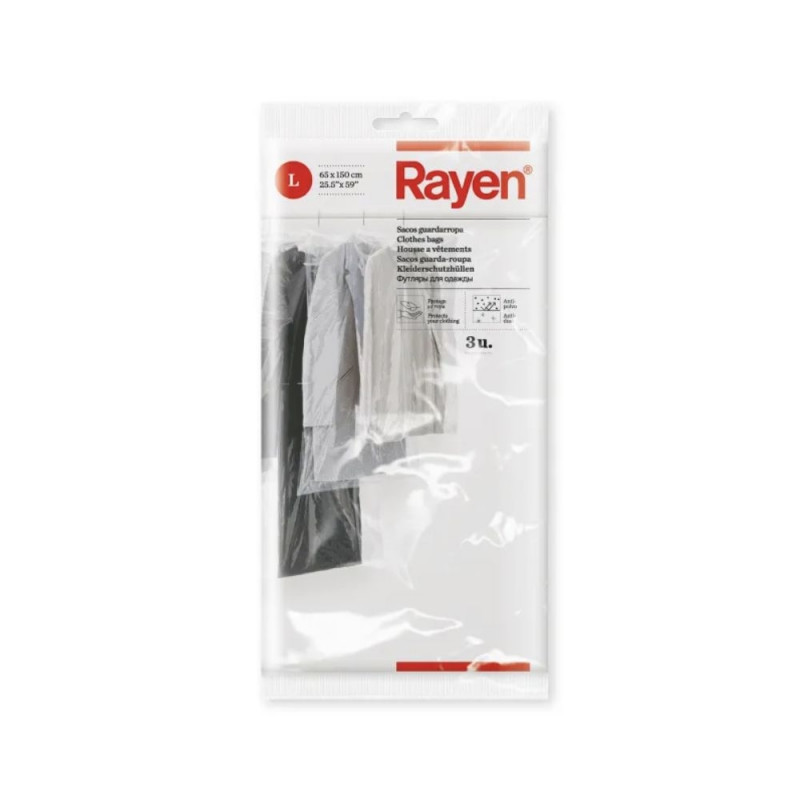 Rayen garment protective covers are made from transparent polyethylene material, allowing easy visibility of the garment contents while providing protection against dust and dirt. They are suitable for storing various garments such as coats, dresses, and suits.