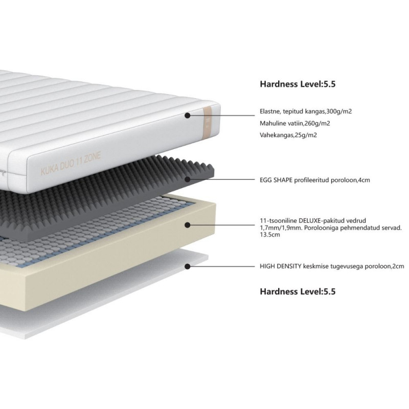 Vedrumadrats KUKA DUO 11 ZONE 160x200xH19cm