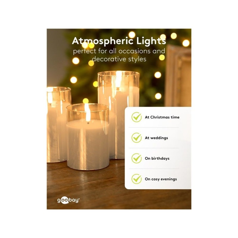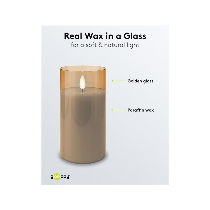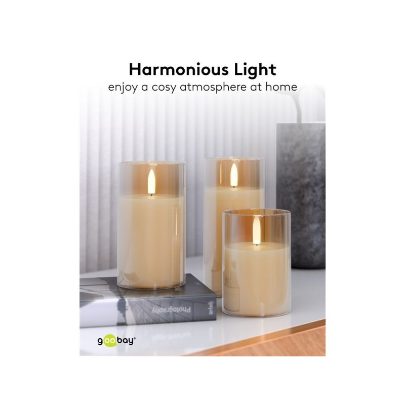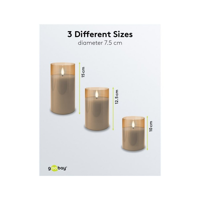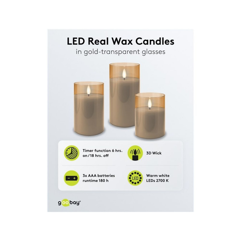 Goobay 3-osaline LED ehtsast vahast küünalde komplekt klaasis, kuldne-läbipaistev