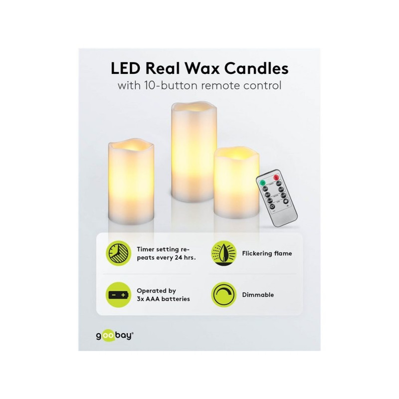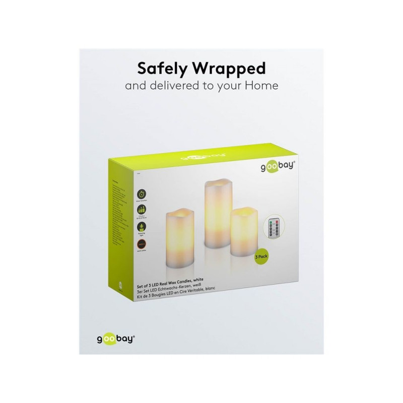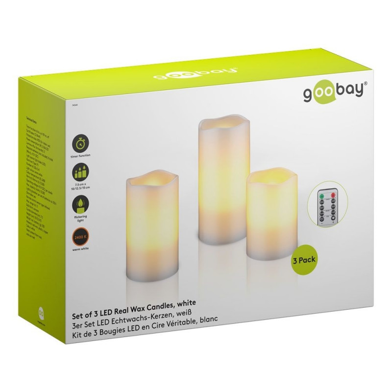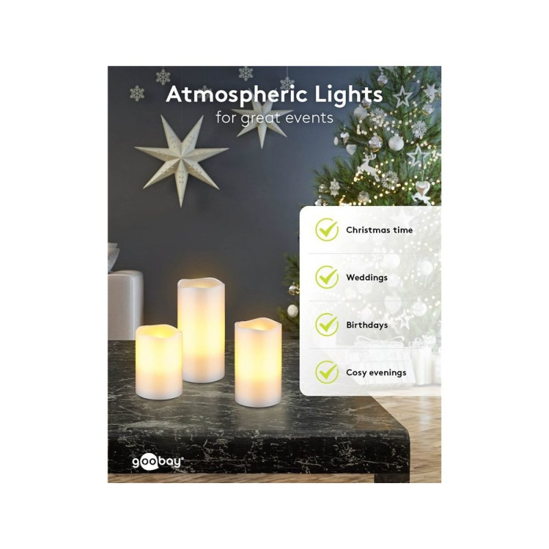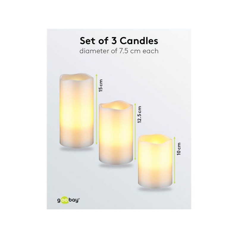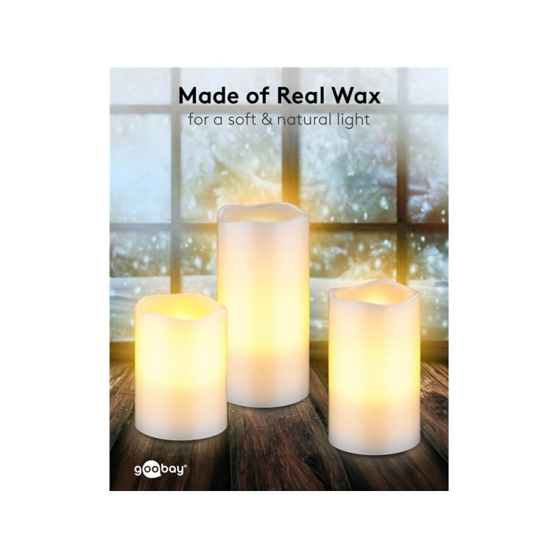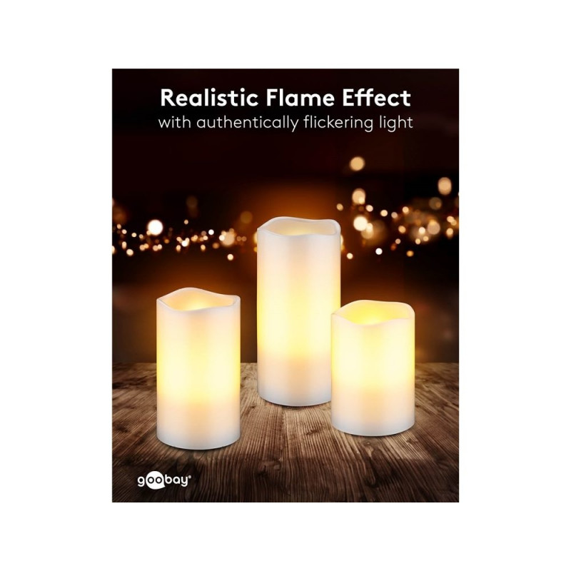 Goobay 3-osaline LED ehtsast vahast küünalde komplekt, valge