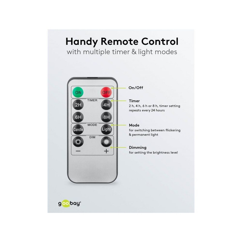 | Description | The traditional elegance of real wax candles meets modern, safe lighting technology: With its authentic flickering light and wax cover, the candle set creates the warm, harmonious atmosphere of real candles - without ever burning out, sooting or creating |