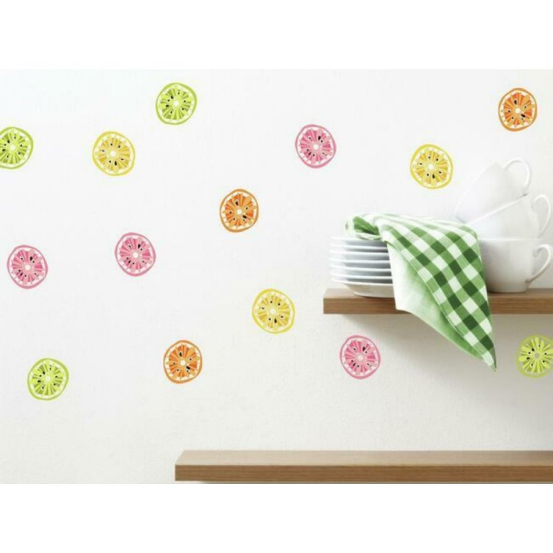 Kauni tsitruselise kujundusega seinakleebised, mis sobivad suurepäraselt laste tuppa. Pakis on 60 kleebist, mis on paigutatud 4 lehele (22,9 cm x 44,1 cm). Kleebised on korduvkasutatavad ja eemaldatavad ilma värvi kahjustamata või plekke jätmata. Lihtne kasutada - koorida lehelt maha, kleepida seinale ja siluda.