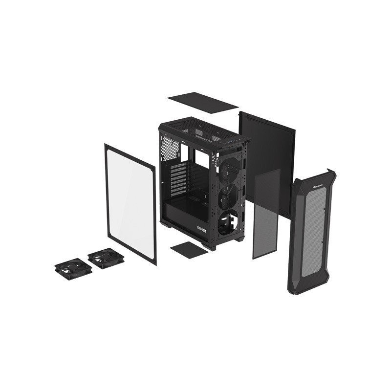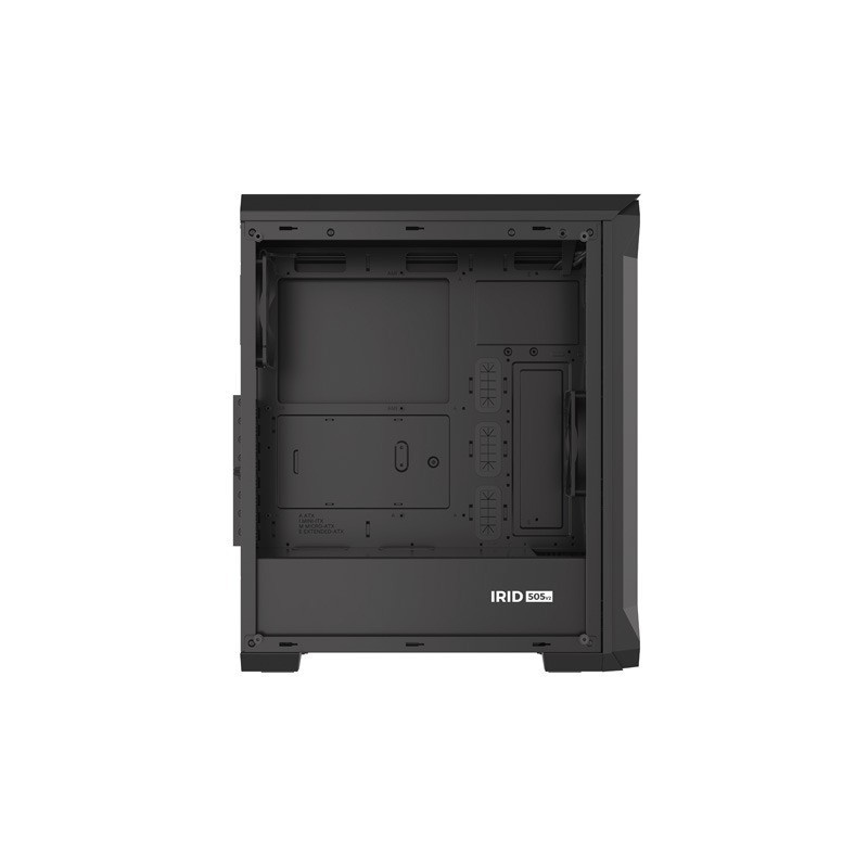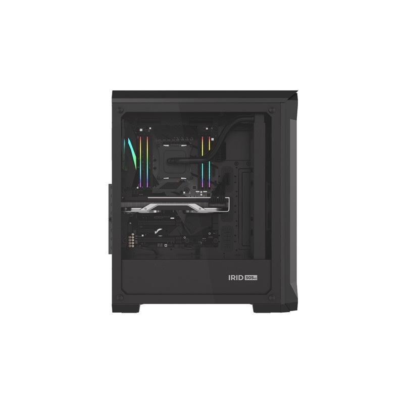 Korpusel on perforeeritud esipaneel ning külgpaneel on valmistatud karastatud klaasist, millel on esteetiline must trükk. Kaunilt viimistletud must teras muudab korpuse elegantseks kunstiteoseks. Irid 505 V2 avaldab muljet mitte ainult oma funktsionaalsusega, vaid ka suurepärase disainiga, mis lisab sinu ruumile klassi ning pakub silmailu.