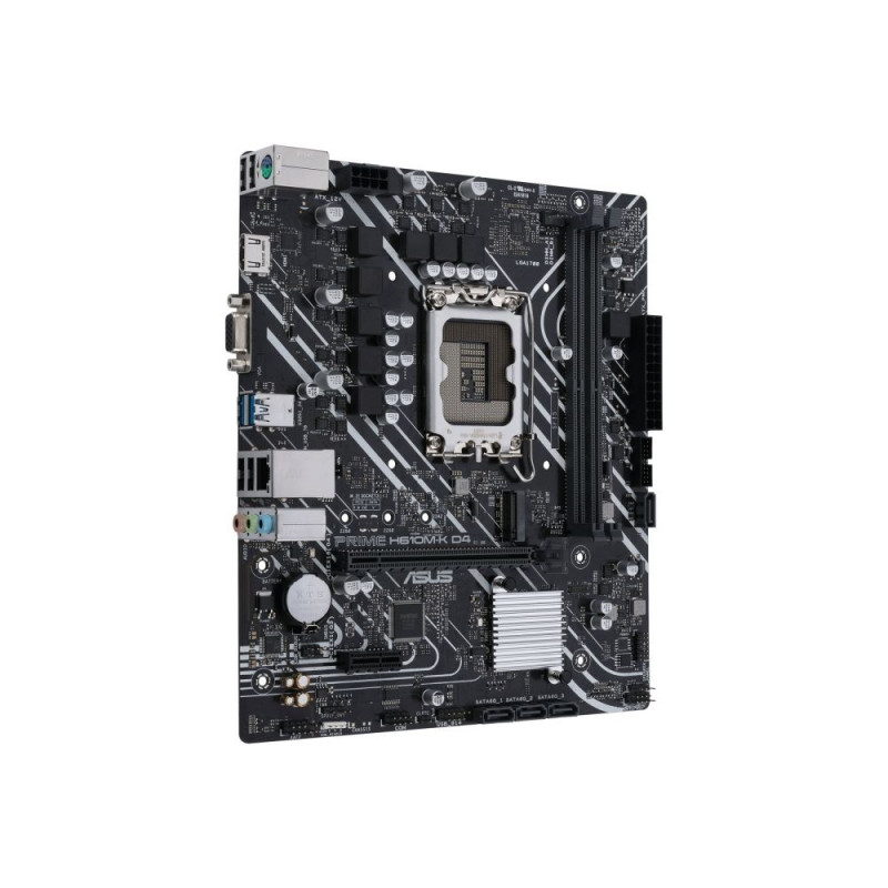 Asus | PRIME H610M-K D4 | Processor family Intel | Processor socket LGA1700 | DDR4 DIMM | Memory slots 2 | Supported hard disk drive interfaces SATA, M.2 | Number of SATA connectors 4 | Chipset Intel H610 | mATX