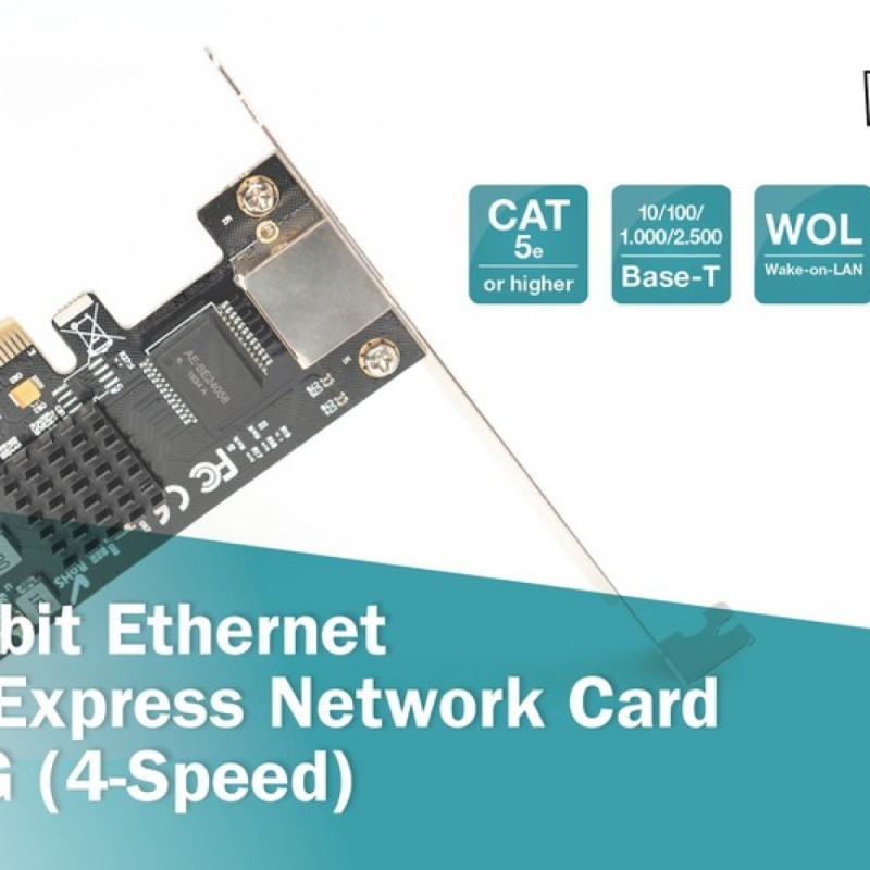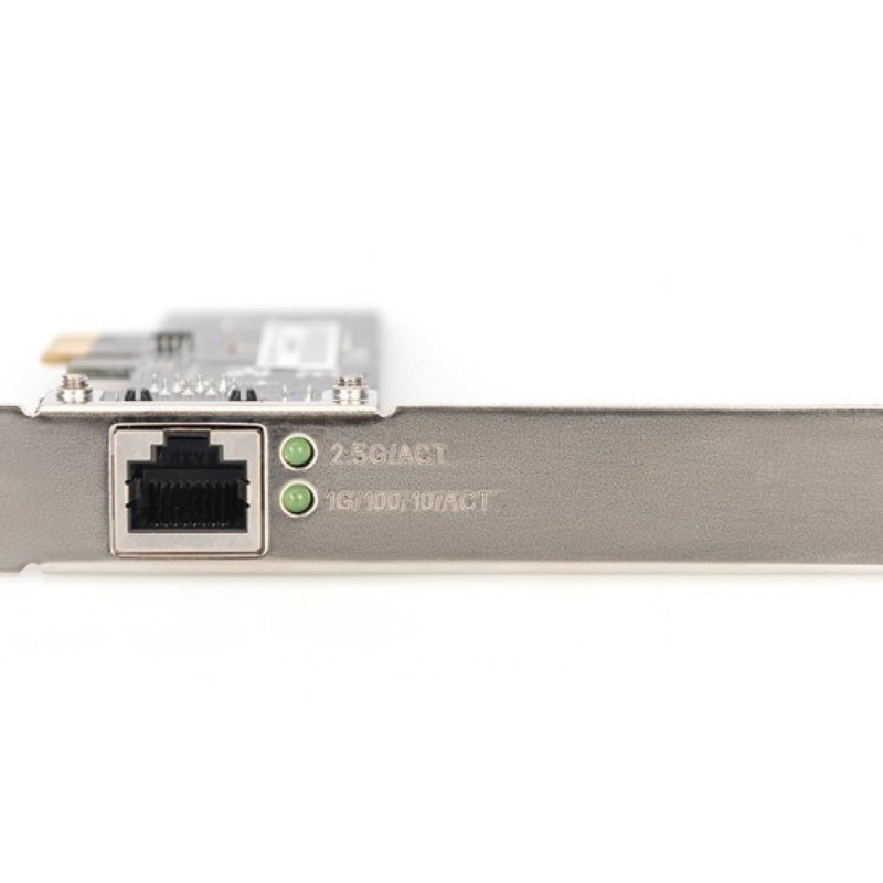 DIGITUSi PCIe Gigabit võrguadapter pakub maksimaalset jõudlust võrgurakendustele, mis vajavad suurt andmeedastuskiirust. See on ideaalne kõrge eraldusvõimega sisu voogesitamiseks. Integreeritud LAN-ühendused (RJ45) on ühilduvad IEEE802.3u standardiga kiire Etherneti ja IEEE802.3ab standardiga gigabit Etherneti jaoks kuni 2,5 Gbps. Samuti toetab see täisdupleksvoolu juhtimist IEEE802.3x ja ärkvelolekut-võrgus (Wake-on-LAN). Kaart saab paigaldada täislaiusega pesadesse ja kaasas on täiendav madala profiiliga pesakate poole kõrguse paigalduse jaoks.