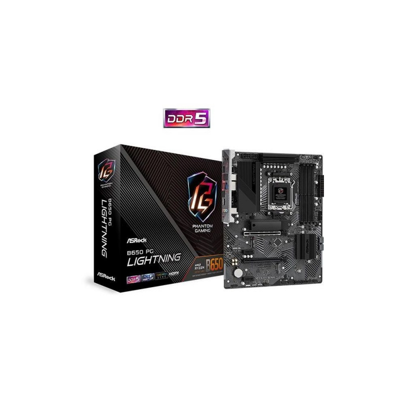 Pamatplate AMD procesorsiem Asrock Mainboard||AMD B650|SAM5|ATX|Memory DDR5|Memory slots 4|2xPCI-Express 4.0 1x|2xPCI-Express 4.0 16x|3xM.2|1xHDMI|1xAudio-In|1xAudio-Out|1xMicrophone|4xUSB 2.0|7xUSB 3.2|2xUSB-C|1xRJ45|B650PGLIGHTNING