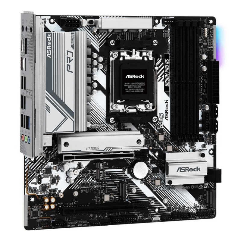 | Summary | Asrock B650M Pro RS. Processor manufacturer: AMD, Processor socket: Socket AM5, Compatible processor series: AMD Ryzen™ 5, AMD Ryzen™ 7. Supported memory types: DDR5-SDRAM, Maximum internal memory: 128 GB, Memory slots type: DIMM. Supported storage drive |